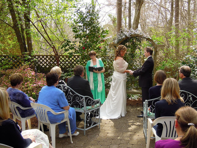 "By the love that has brought you here today, by the vows you have exchanged, and by the integrity of your commitment, in the presence of these witnesses, it is my pleasure and my honor to now pronounce you husband and wife! Rachel, you may kiss the groom!"
