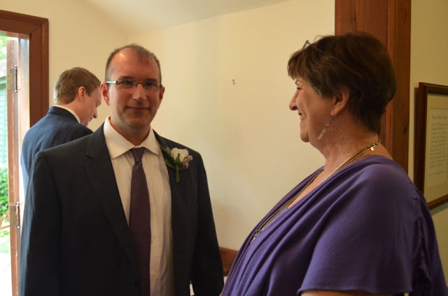 We began with a warm welcome to all and a prayer based First Corinthians. There was a tribute to Charlotte's parents and siblings and their spouses. Adam's parents and brother were honored as well. And then I told the story of how I met Adam and what a fine young man he is and how he and Charlotte had been searching for each other so long and finally found each other after kissing a few frogs along the way! Had to get a little humor in!