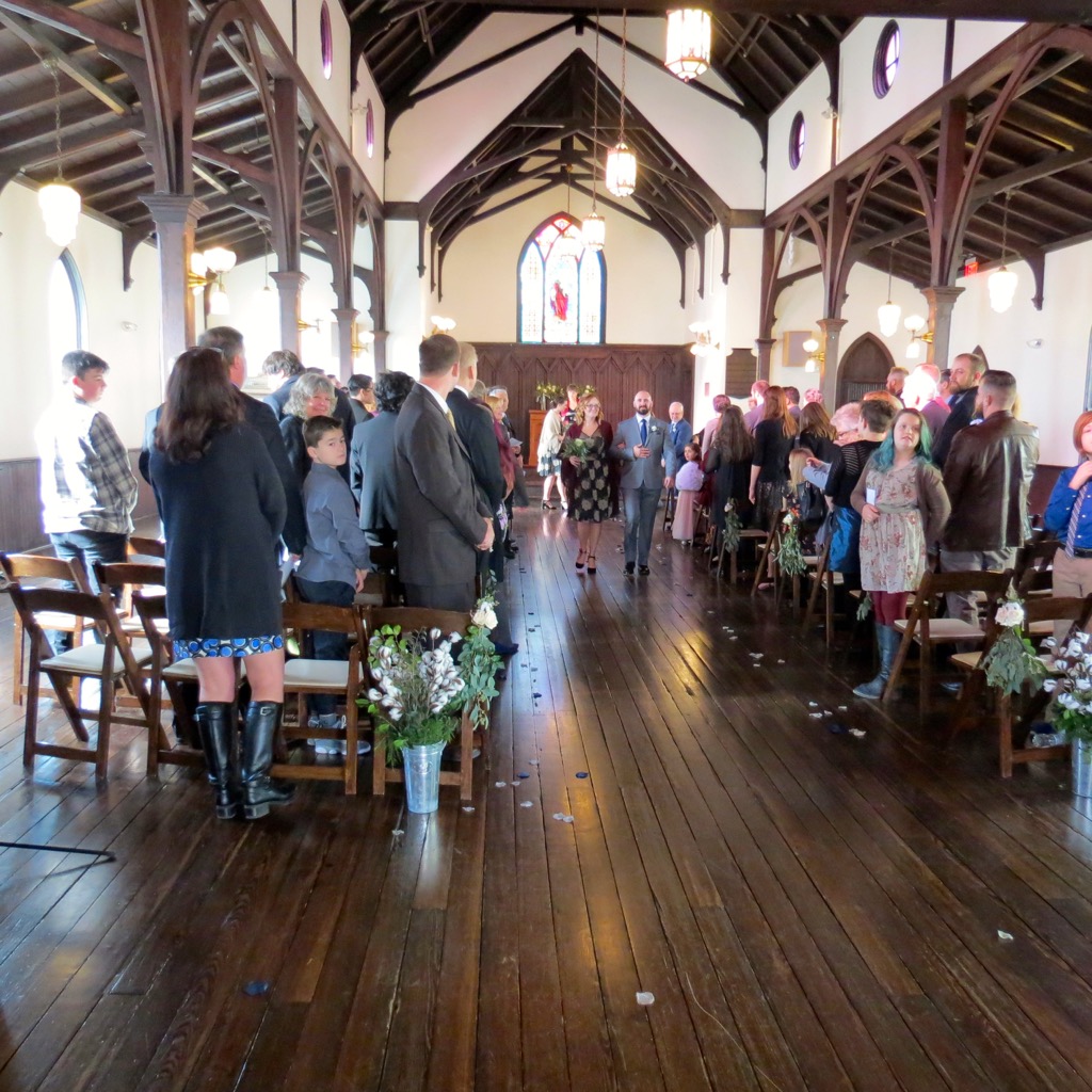 Great shot, even from the first level! I know Paul really got a wonderful picture of the whole group from the loft. The guests then left for Humble Pie where the reception would take place while the couple and their families grabbed some photos in the chapel.